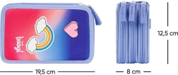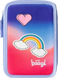 Praktische en stijlvolle drievoudige BAAGL-etui met regenboogdesign biedt een extra ruime indeling voor schoolbenodigdheden. Dankzij elastieken voor dikke kleurpotloden en stiften, een verstevigde rug en sluiting met een kwaliteitsrits blijft alles makkelijk en overzichtelijk geordend. De etui is zonder vulling, zodat je hem precies naar eigen behoefte kunt vullen.