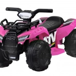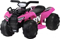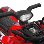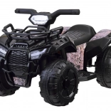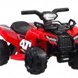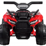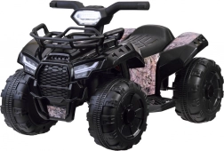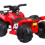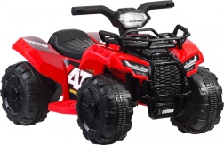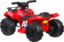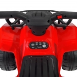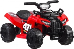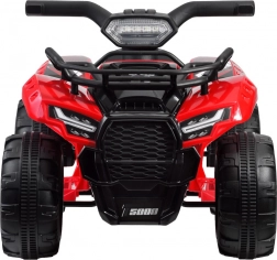 Compacte elektrische kinderquad op batterij met eenvoudige bediening voor de allerkleinsten. Dankzij het lage gewicht en de kleine afmetingen ideaal voor in huis en op de stoep. Voorzien van een 6V motor, 6V 4,5 Ah accu, vooruitrijden, ergonomisch gevormd zadel en voetensteunen. Starten gebeurt met een druk op de rode knop op het handvat; geluidseffecten en claxon zijn inbegrepen.