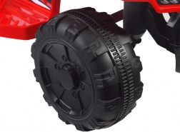 Deze elektrische kinderquad is een uitstekende keuze voor de eerste ritjes. Dankzij de compacte constructie en de brede wielen kan hij alle vlakke oppervlakken aan, zowel binnen als buiten. De bediening is intuïtief – druk gewoon op de rode knop op het handvat en rij weg.