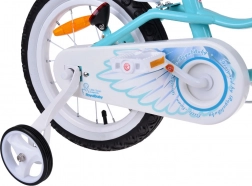 De lichte en veilige kinderfiets ROYALBABY Little Swan 14" in een elegante turkooizen kleur met glinsterend effect zal jonge fietssters blij maken. Biedt stabiliteit dankzij de zijwieltjes, efficiënte voor- en achterremmen, een comfortabel verstelbaar zadel met handgreep en schattige details zoals een mandje en linten aan het stuur voor plezier bij elke rit.