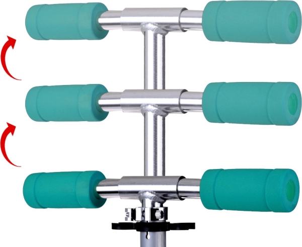 Telescoopstang met meerdere hoogteposities groeit mee met het kind. Zachte foam handgrepen zorgen voor een zekere en comfortabele grip.