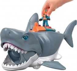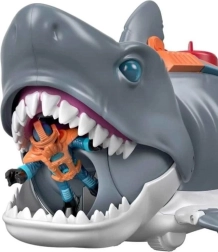 Ga op een spannend onderwateravontuur met de Mega Aanval Haaien Imaginext. Deze grote jager kan binnen een oogwenk duikers opslokken! Met realistische zwem- en bijtbewegingen is spelen met deze haai echt interactief. De haai 'verslindt' de duiker, die vervolgens gemakkelijk via de achterkant van het speelgoed kan worden verwijderd.