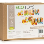 De houten trekspeeltrein vol kleurrijke blokken is ontworpen voor educatieve doeleinden. Hij helpt kinderen letters en kleuren te leren en stimuleert hun creativiteit.