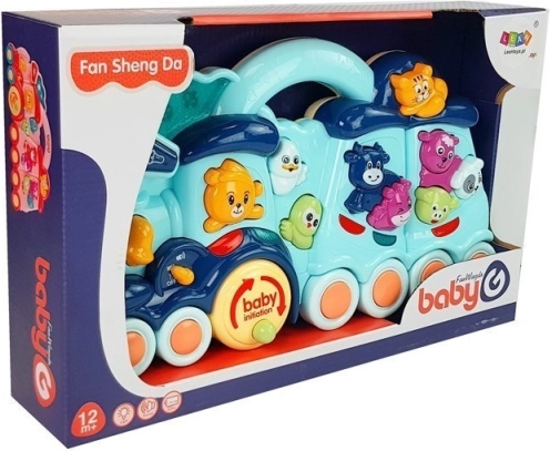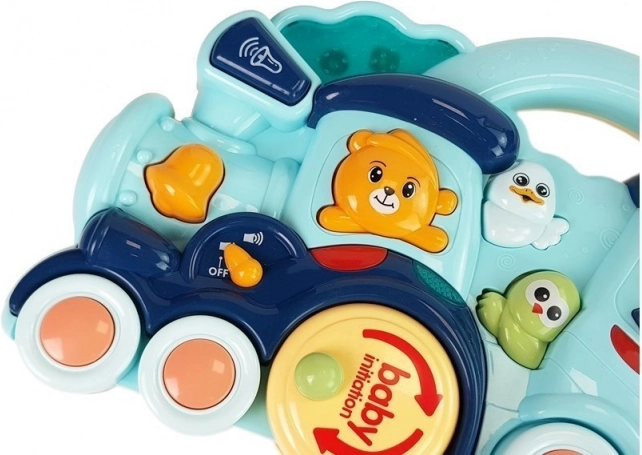 Interactieve blauwe locomotief voor kinderen met dierengeluiden en lichteffecten
