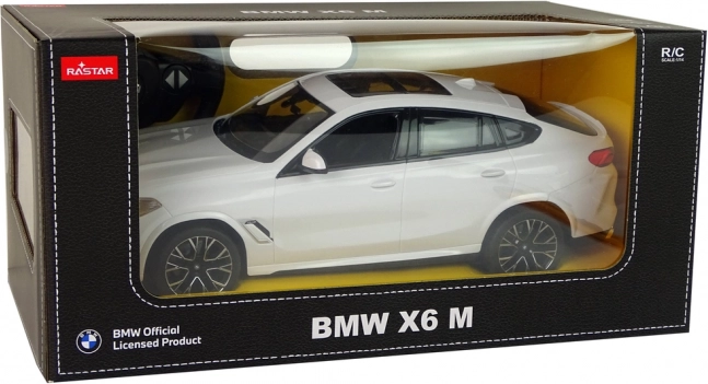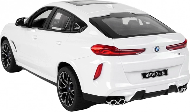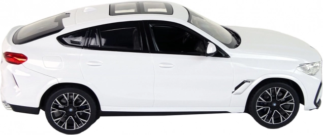 Dit gelicenseerde model van de BMW X6 M in sneeuwwitte kleur blinkt uit door de natuurgetrouwe carrosserie, donker getinte ramen en lichteffecten voor een nog realistischer rijervaring, ook bij schemering. Dankzij de rubberen banden presteert hij goed op gladde vloeren én minder egale oppervlakken en biedt hij vloeiende besturing vooruit/achteruit en links/rechts.