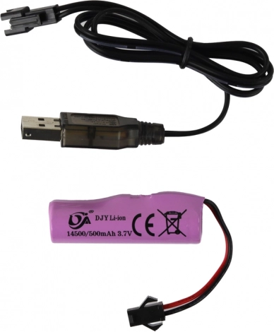 In de set vind je een Li-ion accu van 3,7 V/500 mAh en een USB-oplader voor gemakkelijk laden en langer speelplezier tussen de ritten door.