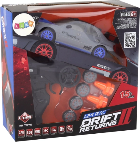 De stijlvolle grijze RC-auto biedt een uitstekende balans tussen prestaties en plezier voor zowel beginners als gevorderde bestuurders. Dankzij de 2,4 GHz frequentie is er geen storing en geniet je van vloeiende besturing vooruit, achteruit en bij het sturen. Verwisselbare wielen passen de rit aan het oppervlak aan – met grip voor snelle runs, glad voor drift.