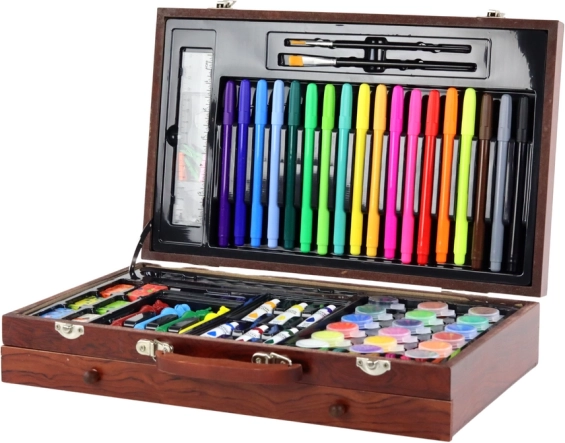 Duik in de wereld van kunst met onze kunstset, die een ideaal cadeau is voor kinderen en volwassenen. Deze houten koffer zal u betoveren: