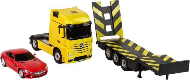 Ontdek de magie van de afstandsbediende Mercedes-Benz vrachtwagencombinatie. Deze set is uitgerust met diverse aantrekkelijke details, zoals getinte ramen en zorgvuldig uitgewerkte elementen die een karakteristieke uitstraling geven.