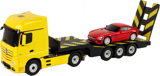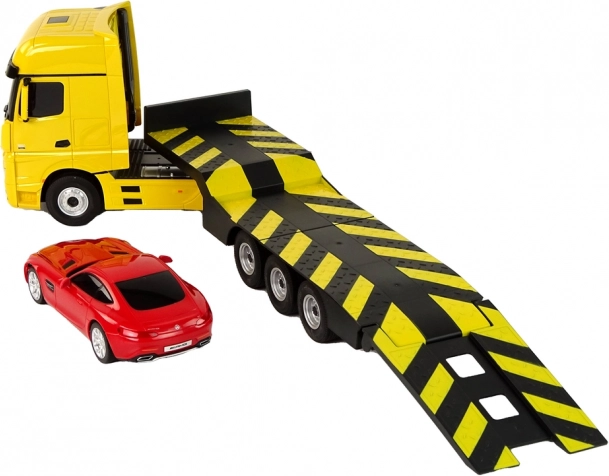 Grote rubberen wielen zorgen voor stabiliteit en tractie tijdens het vervoeren van andere voertuigen. Bovendien voegen de lichtgevende koplampen realisme toe en zorgen ze voor een indrukwekkende presentatie op de weg.
