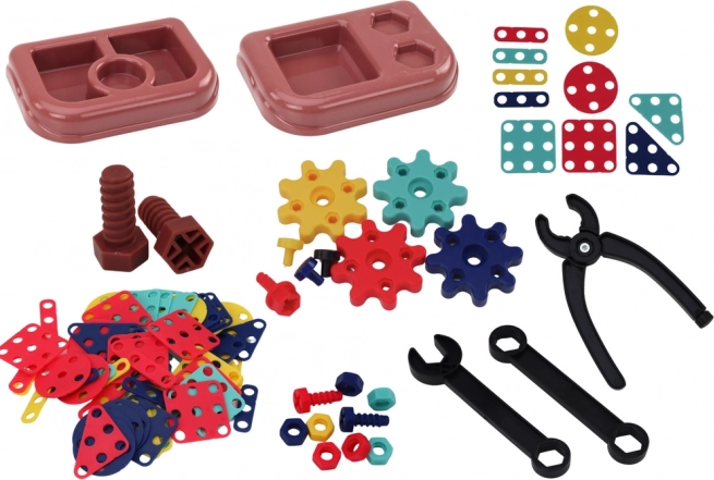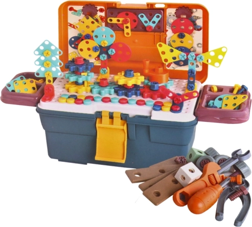 De bouwset bevat diverse tools zoals sleutels en tangen. Helpt bij de ontwikkeling van de fijne motoriek.