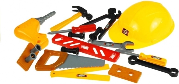 Boormachine, hamer, zaag, schroevendraaiers en sleutels zien eruit als echte tools, maar hebben veilige vormen en een licht ontwerp. Kinderen kunnen zo hun fijne motoriek en coördinatie trainen zonder risico.