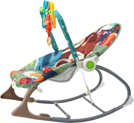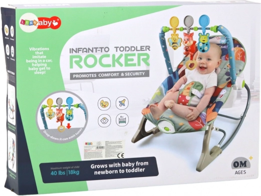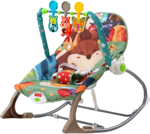 Praktische 2‑in‑1 kinderwip en ligstoel combineert kalmerende vibraties, veilige driepuntsgordels en een speelboog met speelgoed. Het vrolijke bosmotief met vos, lieveheersbeestje en vlinder stimuleert de zintuigen en motoriek, terwijl zachte materialen en een anti‑slipconstructie comfort en veiligheid bieden vanaf de eerste maanden.