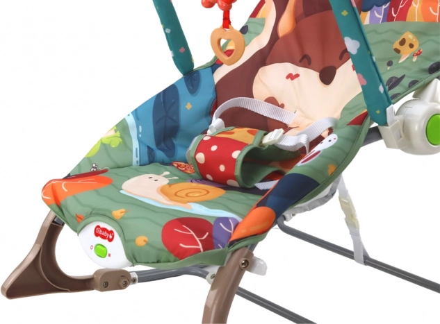 Het stabiele metalen frame met antislipbasis en driepuntsgordel beschermt je kindje tijdens zitten en schommelen. De hoes met bosdiertjes is zacht aanraakvriendelijk en gemakkelijk te reinigen. Dankzij de compacte afmetingen is het eenvoudig te verplaatsen en past het in ieder interieur.