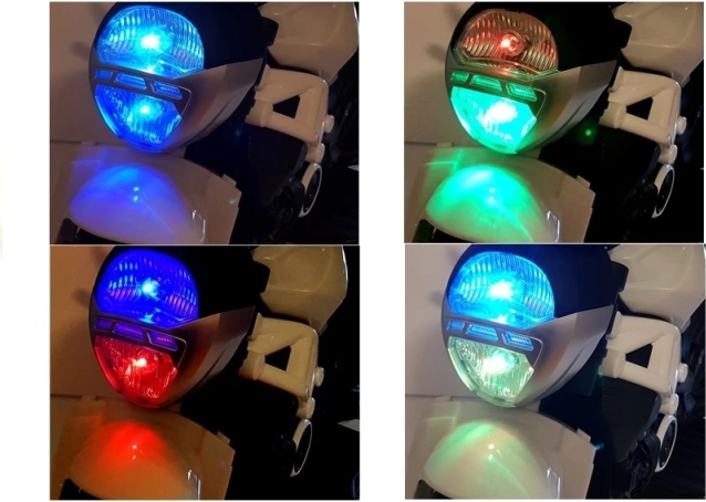 De voorste LED-lamp verandert van kleur en geeft de motor een aantrekkelijke uitstraling en betere zichtbaarheid tijdens het rijden.