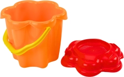 De emmer is uitgerust met een deksel in bloemvorm, dat als zeef voor het zand fungeert, wat een extra dimensie toevoegt aan het zandspel.