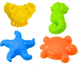 Bevat vormpjes in de vorm van een krab, een zeepaardje, een zeester en een schildpad voor creatieve zandcreaties.