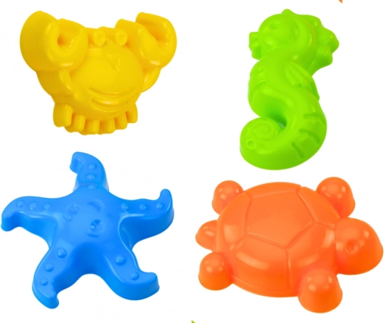 Zeedierenvormpjes inclusief zeepaardje, zeester, krab en schildpad voegen een leuk element toe aan het spel en maken interessante zandsculpturen mogelijk. Deze set is verkrijgbaar in levendige kleuren die de aandacht van kinderen trekken.