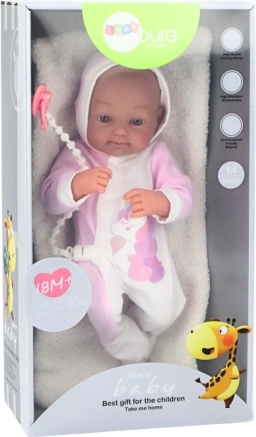 De pop is gemaakt van veilige en duurzame materialen die kinderen veilig spelplezier bieden. De set bevat ook een fopspeen aan een ketting die aan de kleding van de pop is bevestigd en een zachte deken.