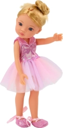 Deze pop met een hoogte van 33 cm is ideaal om mee te spelen én voor verzamelaars. Ze heeft lang, blond haar stijlvol opgestoken in een knot, passend bij de look van een echte ballerina. Ze draagt een roze, glinsterende jurk met een zwierige rok die prachtig schittert in het licht. Daarnaast heeft ze roze, glanzende schoentjes die perfect bij haar dansoutfit passen.