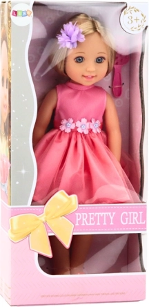 Deze charmante pop heeft lange, stylizeerbare blonde haren versierd met een schattige haarclip. De set bevat een roze borstel voor haarverzorging. De pop draagt een prachtige roze jurk met bloemendetails en bijpassende roze schoentjes. Haar subtiele make-up en zorgvuldig geschilderde ogen en lippen voegen elegantie en charme toe.