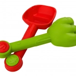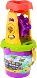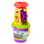 Alles in één: emmer met molen, zeef en trechter, schep, hark, gieter en twee vormpjes voor eindeloos plezier op het strand en in de zandbak.