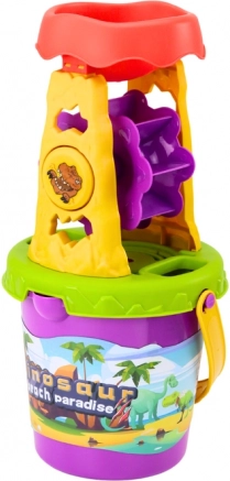 Deze zandset met dinothema is ideaal voor kleine ontdekkers. De praktische emmer met molen combineert een zeef om te zeven en een trechter voor nauwkeurig strooien, waardoor het bouwen van kastelen, wegen en beelden makkelijk en leuk wordt. De duurzame uitvoering zorgt voor een lange levensduur en zorgeloos buitenspelen.