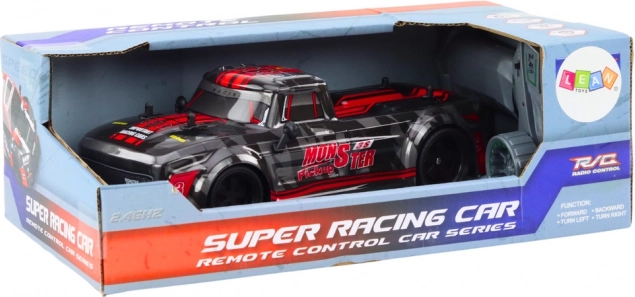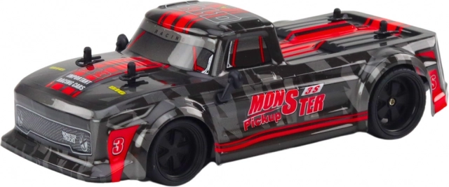 De RC pick‑up op schaal 1:18 is een uitstekende keuze voor beginners en jonge raceliefhebbers. Dankzij de rubberen banden met uitstekende grip kan hij over gladde en licht oneffen oppervlakken rijden en blijft hij stabiel, zelfs bij hogere snelheden. Het elegante zwarte design met rode accenten benadrukt het sportieve karakter.