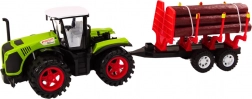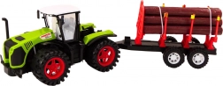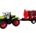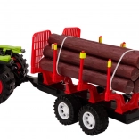 De groene tractor met rode wielen en een aanhanger voor boomstammen biedt een authentieke uitstraling van landbouwmachines en stimuleert fantasierijk spel.