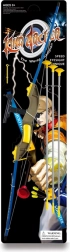 De set bevat een indrukwekkende boog van 102 cm lang, aantrekkelijk ontworpen in blauw met gele en gouden accenten. Drie pijlen in grijs-gele kleurcombinatie zijn voorzien van een rubberen zuignap dat veilig gebruik garandeert en het risico op verwondingen minimaliseert.