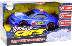 De blauwe raceauto is perfect ontworpen voor kinderplezier dankzij de licht- en geluidseffecten. De koplampen en zichtbare motor knipperen in verschillende kleuren, wat echte autolichten simuleert.