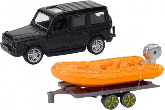 Deze unieke set biedt een combinatie van een terreinwagen en een boot, ontworpen voor jonge avonturiers die houden van zowel land als zee-ervaringen. De zwarte wagen is stijlvol en voorzien van aandrijving, terwijl de aanhanger het transport van de boot vergemakkelijkt, klaar voor elke waterexpeditie!