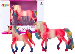 Betoverende set van twee roze eenhoorns – een volwassene en een veulen – voor magisch spel en als pronkstuk. Realistische details, een kleurrijke manen en staart, duurzame afwerking en CE-, EN71-certificering garanderen veilig speelplezier voor kinderen vanaf 3 jaar.