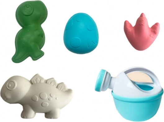 De hele set is uitgevoerd in gedempte tinten, wat een elegante uitstraling geeft en in de smaak zal vallen bij elke dinofan. De set is gemaakt van duurzame en veilige materialen en zorgt voor langdurig speelplezier op het strand of in de zandbak. Ideaal voor de ontwikkeling van de verbeelding en fijne motoriek van kinderen.
