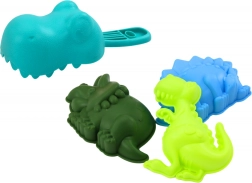 In de set zitten drie kleurrijke vormpjes in de vorm van dinosaurussen, waarmee kinderen zandscènes en avonturen met prehistorische wezens kunnen maken. De vormpjes stimuleren de verbeelding en verrijken het spel.