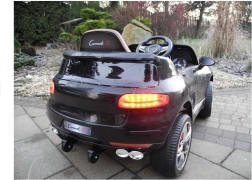 In de auto vind je een zachte beklede stoel die comfort en veiligheid biedt, terwijl de meegeleverde afstandsbediening 2.4G ouders controle over de auto geeft. De carrosserie in opvallende zwarte tint wordt geaccentueerd met rode accenten en spectaculaire LED-lampen die zichtbaarheid en veiligheid onderweg verbeteren.