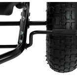 Grote rubberen wielen met geprofileerd loopvlak en lagers in de naven zorgen voor een soepele en stille rit op diverse ondergronden en uitstekende grip.