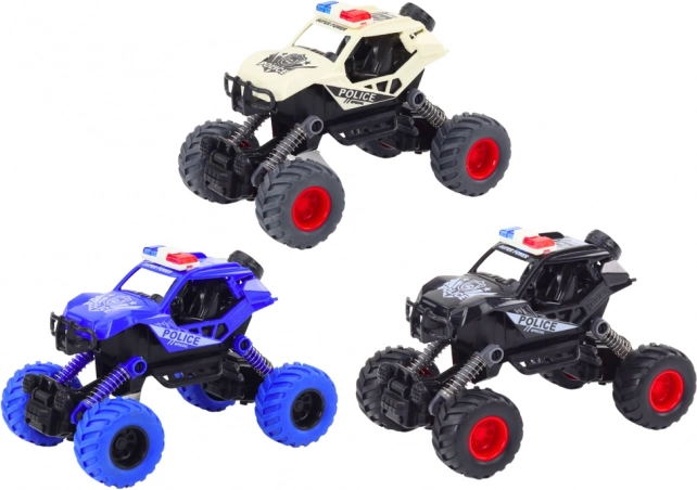 De auto heeft een realistisch design met details zoals sirenes, lampen en politieaanduidingen. Dankzij speciale veringen maakt hij spectaculaire sprongen mogelijk, waardoor je kind obstakels kan overwinnen en stunts kan uitvoeren.