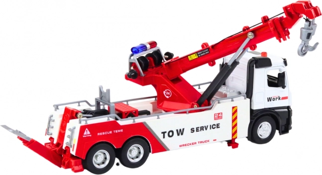 Deze takelwagen met kraan is een uitstekende keuze voor creatief kinderspel. De robuuste metalen cabine, gedetailleerde afwerking en rubberen wielen garanderen duurzaamheid en een soepele beweging op verschillende oppervlakken. Dankzij de frictie-aandrijving met duwmechanisme rijdt de wagen makkelijk vooruit.