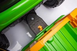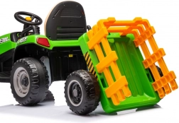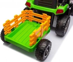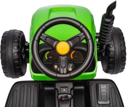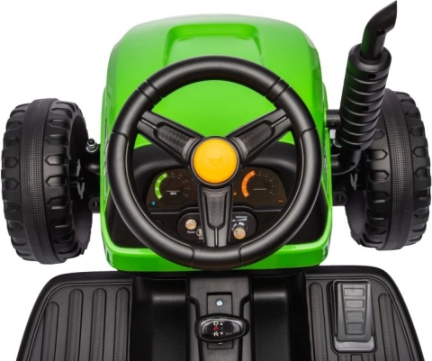 Deze groene accu-kindertractor zorgt voor uren speelplezier in de buitenlucht. Grote, geprofileerde wielen kunnen verschillende ondergronden aan en de afneembare aanhanger stelt kleine bestuurders in staat speelgoed of spulletjes te vervoeren. Realistische details zoals het stuur, dashboard en bedieningselementen creëren een echte rijbeleving.