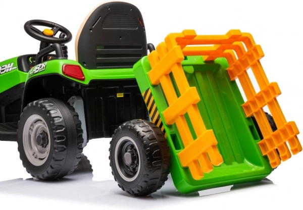 Leuke en duurzame elektrische kindertractor in het groen met een afneembare aanhanger voor het vervoeren van speelgoed. Biedt realistische besturing, grote wielen voor buiten rijden en een comfortabel zitje. Ideaal voor actief spelen in de tuin en op de binnenplaats, stimuleert de verbeelding en motoriek. Dankzij de stabiele constructie en eenvoudige bediening is het een geweldige keuze voor de eerste “rij”-ervaringen. Realistische details, robuste uitvoering en urenlang speelplezier.