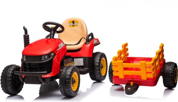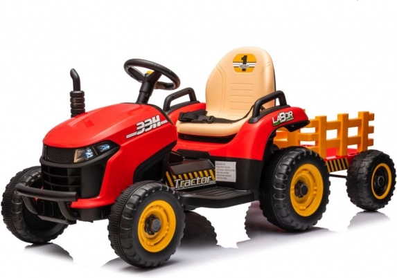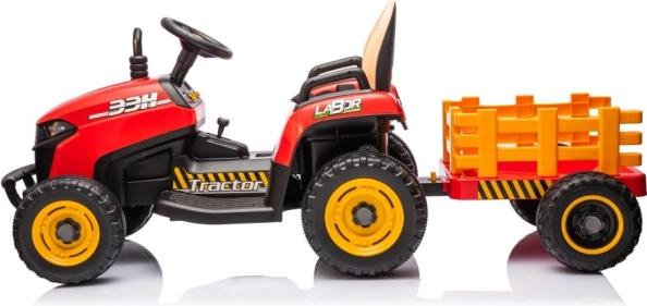 Geef kinderen hun eigen trekker met aanhanger en kijk hoe ze speelgoed, bladeren of kleine spulletjes door de tuin vervoeren. De robuuste afwerking, veilige zitting en eenvoudige besturing met het stuur garanderen comfortabel en leuk rijden. De rode uitvoering met contrasterende gele details ziet er geweldig uit en trekt de aandacht van elke jonge bestuurder.