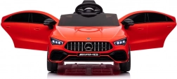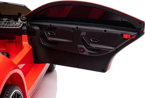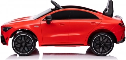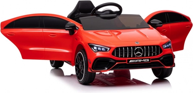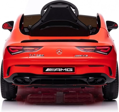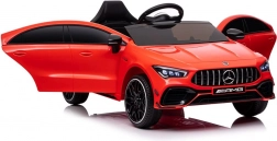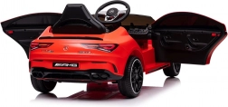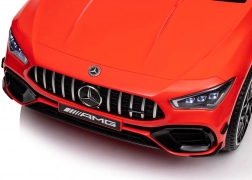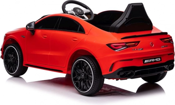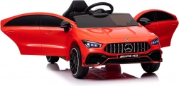 Stijlvolle elektrische kinderauto geïnspireerd op het model MERCEDES CLA 45 S AMG, met vierwielaandrijving 4x4, realistisch design en veilige rit dankzij de zitting met gordel. De rode carrosserie, te openen deuren en het gedetailleerde interieur met een fantastisch stuur bieden kinderen een authentieke rijervaring.