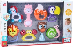Set rammelaars en bijtringen voor baby’s – diertjes, 8 stuks