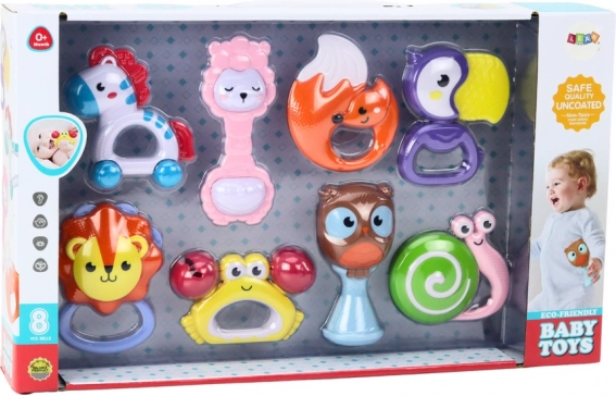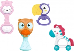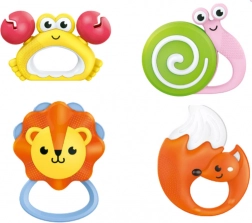 Deze veelzijdige set rammelaars en bijtringen in de vorm van schattige diertjes prikkelt de nieuwsgierigheid van kinderen en helpt zicht, gehoor en fijne motoriek te ontwikkelen. Heldere kleuren trekken de aandacht, rammelende elementen trainen het gehoor en zachte bijtende delen bieden verlichting voor het tandvlees tijdens de tandgroei.