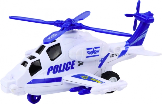 De politiehelikopter is beschikbaar in twee kleuren, willekeurig verkocht. Bevat CE-certificaat en voldoet aan norm EN71. Geschikt voor kinderen ouder dan 3 jaar.