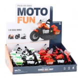 De motor is uitgerust met wrijvingsaandrijving, wat betekent dat hij naar voren beweegt wanneer hij geplaatst en losgelaten wordt. De motorfiets wordt aangedreven door drie AG13-batterijen die bij de verpakking inbegrepen zijn. Kinderen kunnen hun spel verrijken door de beweging van de motorfiets te volgen.
