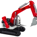 De verpakking bevat 8 stuks, maar speelgoed wordt afzonderlijk verkocht. De graafmachine heeft afmetingen van 26cm x 10cm x 7,5cm, terwijl de ruime verpakking 42cm x 36cm x 11cm meet. Het product heeft een CE-certificaat en voldoet aan de norm EN71. Bestemd voor kinderen vanaf 3 jaar.