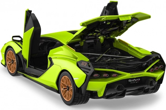 Natuurgetrouw uitgewerkte carrosserie van het gelicentieerde model LAMBORGHINI SIAN FKP 37 met accentuowane lijnen en functionele deuren voor maximale realiteit.