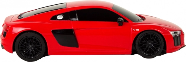 Ontdek de coole sportwagen AUDI R8 als radiografisch bestuurbaar model in schaal 1:24. De rode lak, getinte ramen en nauwkeurig gevormde carrosserielijnen benadrukken de trouw aan het origineel. Het model is gemaakt van duurzaam kunststof en dankzij de rubberen wielen rijdt het goed op gladde vloeren en ook op minder egale ondergronden.